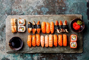 Menuen står klar. På stribe. Rullet i tang, minimalistisk pyntet og fuld af smag.